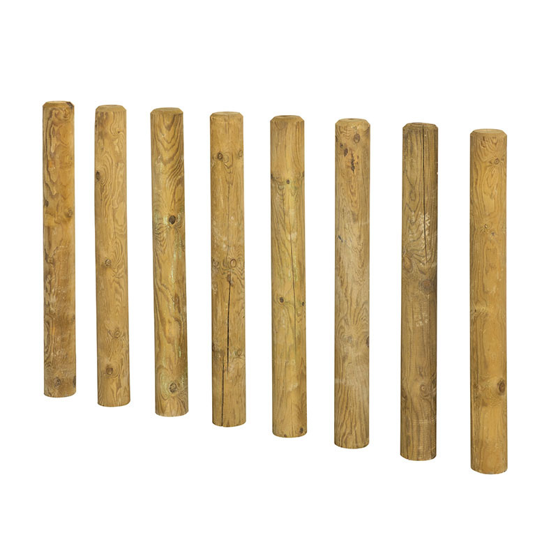 Madera de pino silvestre tratada al autoclave nivel IV. La impregnación se realiza mediante el sistema Bethel vacío-presión a base de sales hidrosolubles libres de cromo y arsénico.